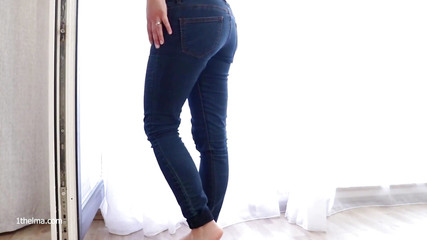 A Girl With A Beautiful Butt Tries On Tight Jeans And Fingering In Them, Wet Panties.
